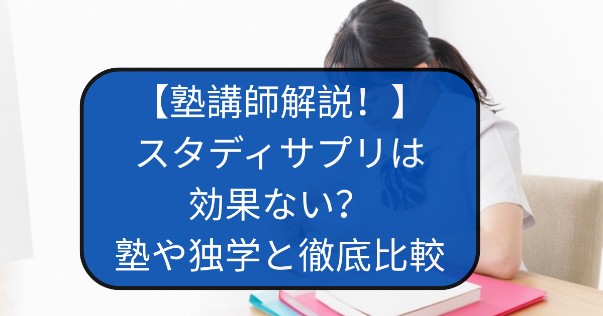 この記事では、「スタディサプリは効果ない」と感じる理由を分析しつつ、他の学習法(集団塾、個別指導塾、学習管理塾、独学)と徹底的に比較し、高1・2年生にとって最適な選択肢は何かを客観的に検証します。
