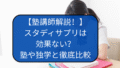 メリット: スタサプの弱点である「自己管理」を完全に外部委託できる。インプット(スタサプ)とマネジメント(管理塾)の最強タッグ。